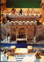 flags and an entrance gate that raises and lowers. Also, dressed out horses and